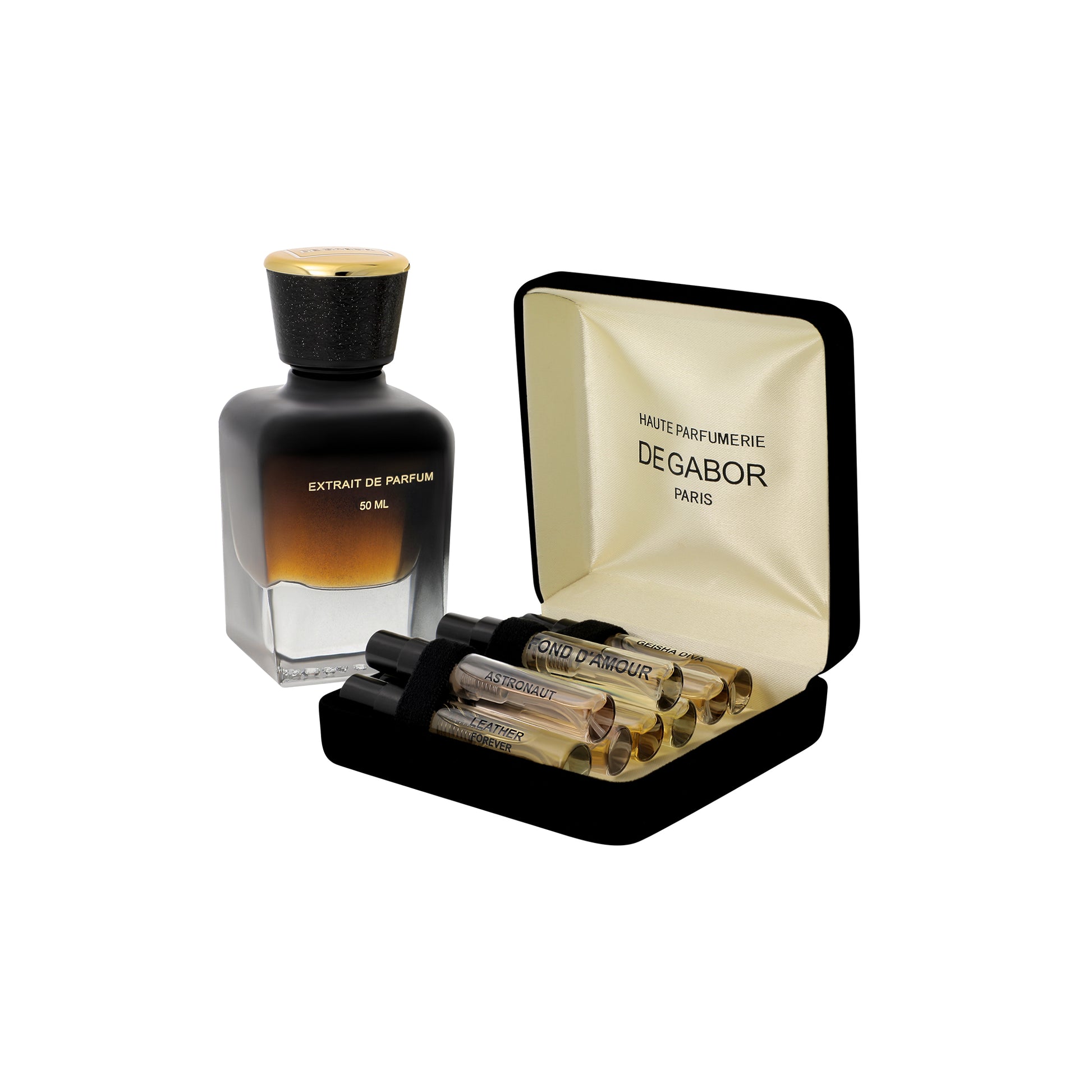 This coffret is ideal as a gift to yourself or someone else as an invitation to discover the olfactory jewels of De Gabor Haute Parfumerie.