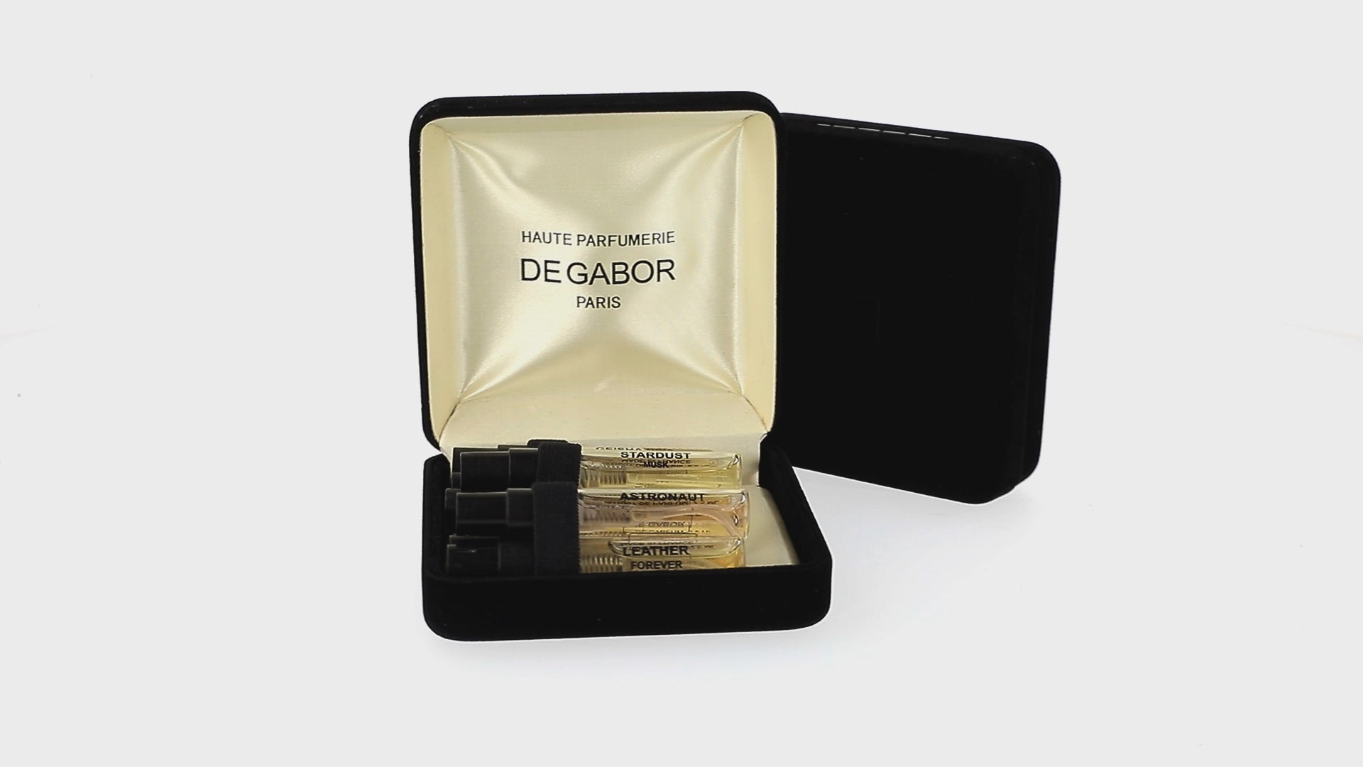 Parfums de Gabor offers this exclusive travel kit with 9 random samples of 2.5 ml glass bottles in a velvet box with champagne satin. This coffret is ideal as a gift to yourself or someone else as an invitation to discover the olfactory jewels of De Gabor Haute Parfumerie.